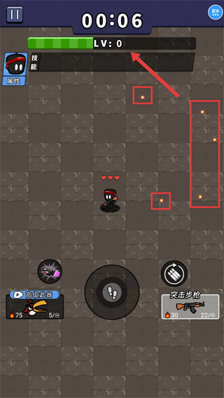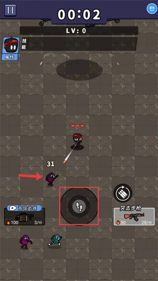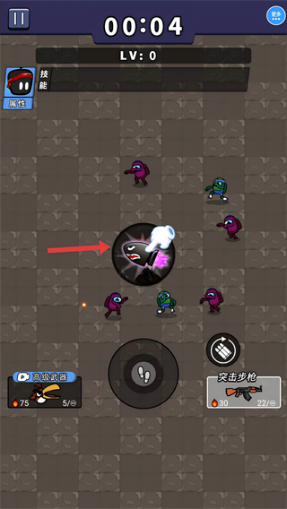 1、操控下方移动摇杆调整角色位置,使用【突击步枪】攻击敌人。