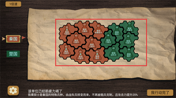 1、利用【秦国】【铁鹰锐士】的优势对抗【楚国】【戟兵】,可优先部署该兵种突破敌方防线。