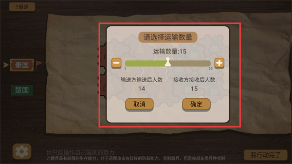 4、调整运输数量至【15】,减少输送方兵力消耗,获得足够兵力支撑战线。