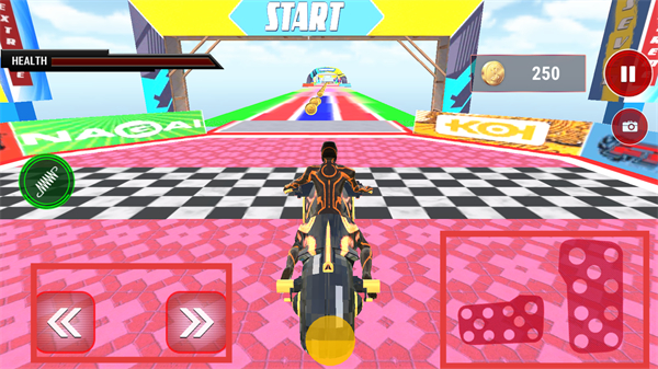 3、操控摩托时,用左侧方向键调整行驶方向,右侧油门、刹车控制速度。