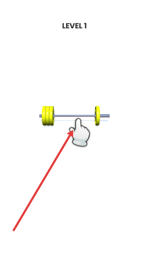 1、游戏开局,处于【LEVEL-1】,按照提示,点击杠铃位置,开启举重相关的游戏操作,进入后续玩法。