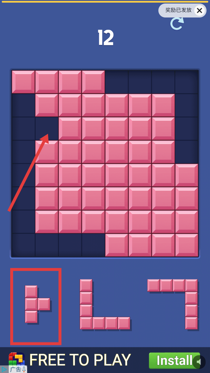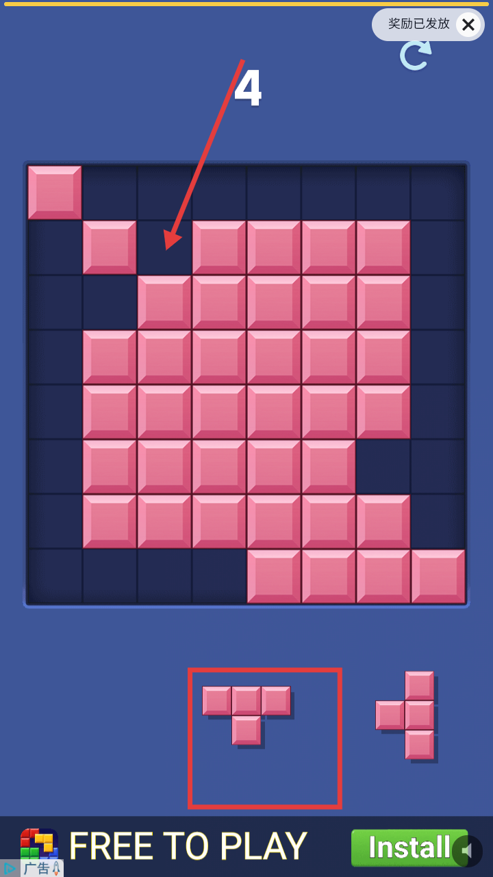 3、继续拼接,根据网格空缺形状,挑选匹配的粉色方块,精准放置,逐步完成更多区域的填充,积累分数。