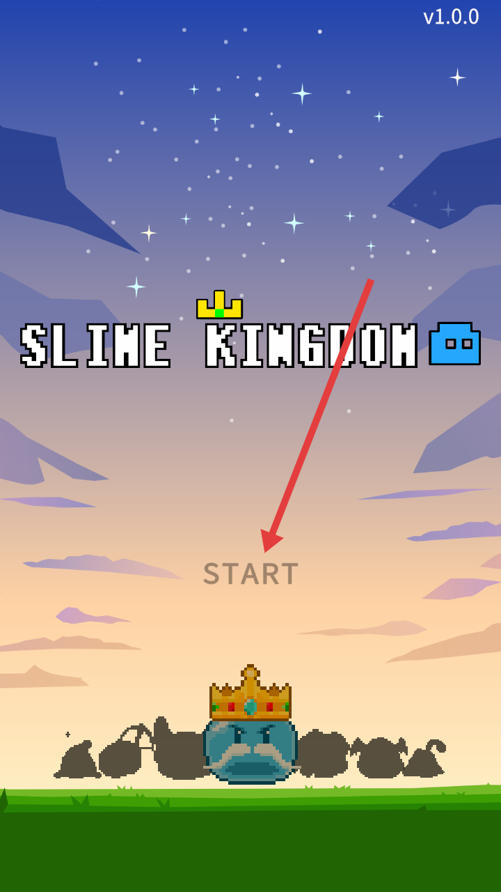 1、游戏初始界面,点击【START】,进入《SLIME-KINGDOM》,开启史莱姆王国的冒险挑战。