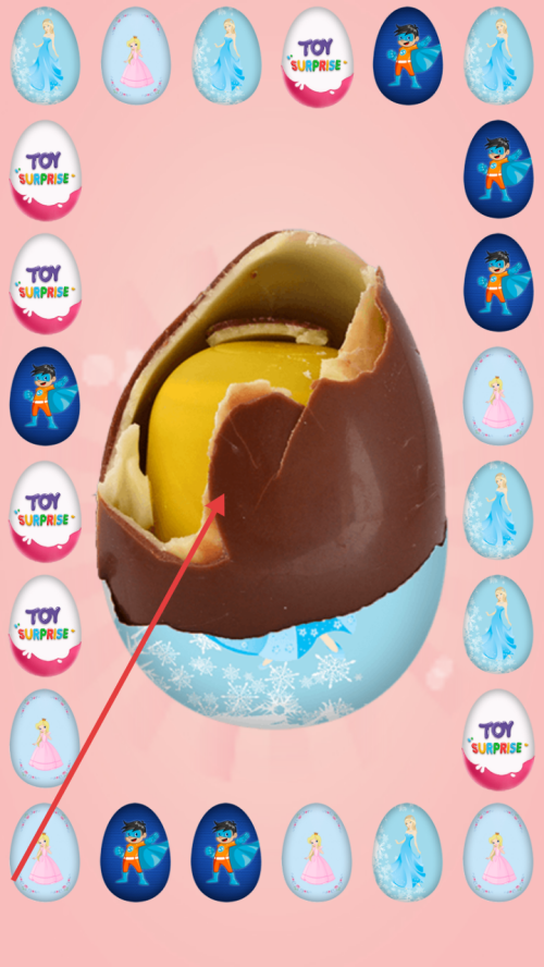 2、开启蛋后,能看到巧克力蛋内的黄色物件,继续操作可获取其中的惊喜,推进游戏进程。