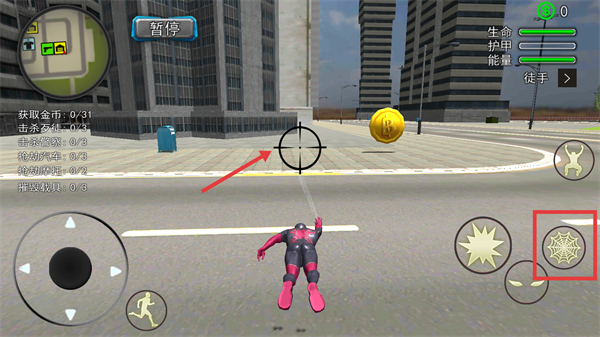 3、遇目标时,点击右侧蛛网图标,发射蛛网,尝试捕捉或互动。