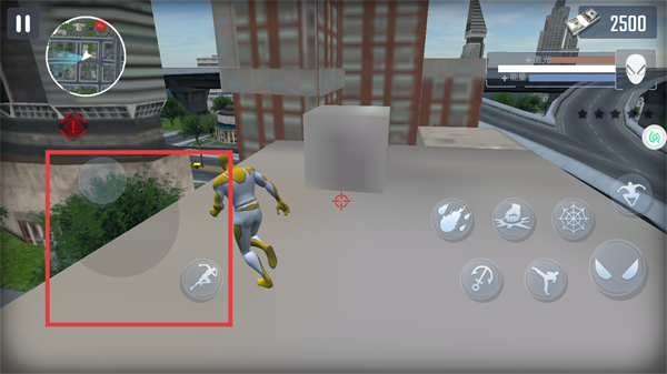 3、用左侧操作区域,控制角色移动、奔跑,在城市建筑间穿梭探索。