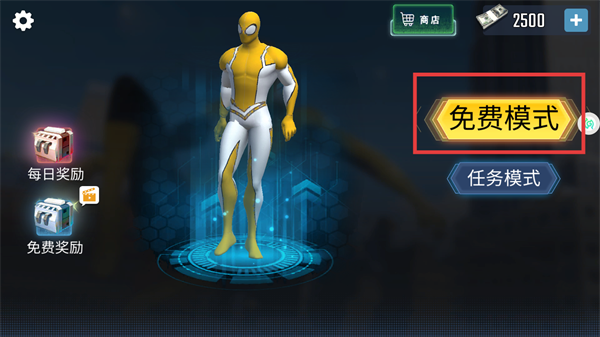 1、点击【免费模式】,进入游戏场景,开启超级英雄城市冒险。