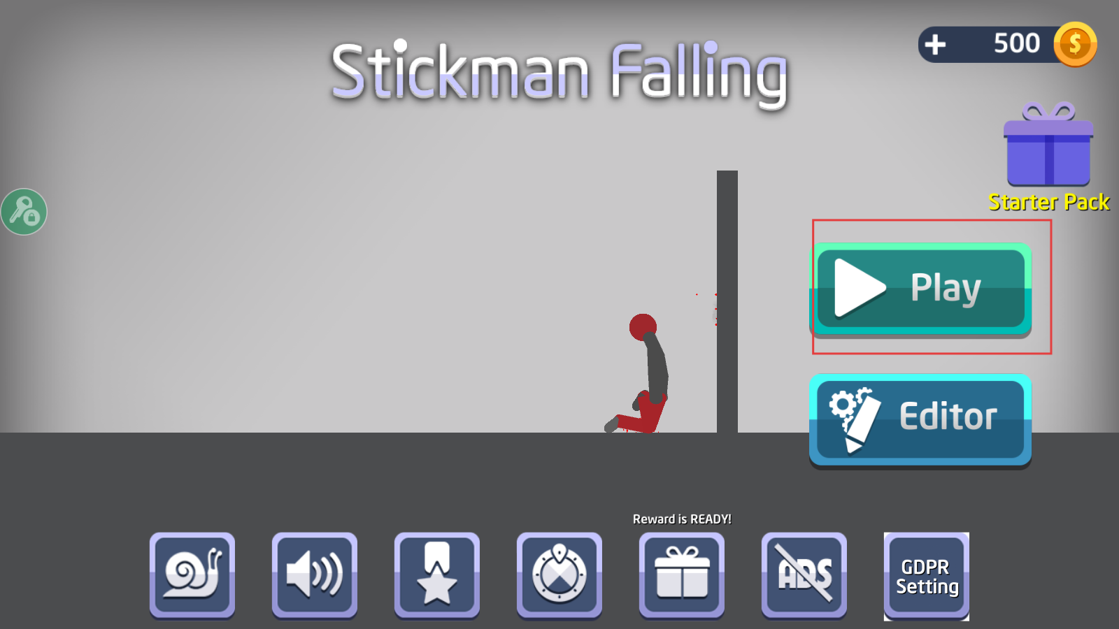 1、进入游戏主界面,点击【Play】按钮,即可开启火柴人下落的游戏之旅。
