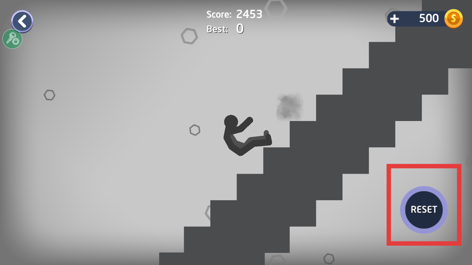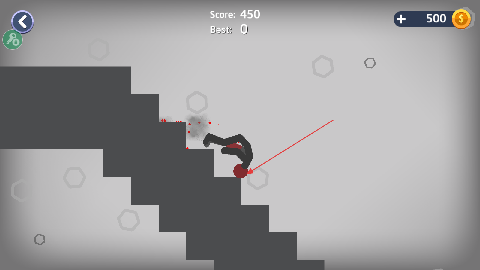 2、游戏内,利用火柴人沿楼梯滚动下落,碰撞楼梯可获得分数。