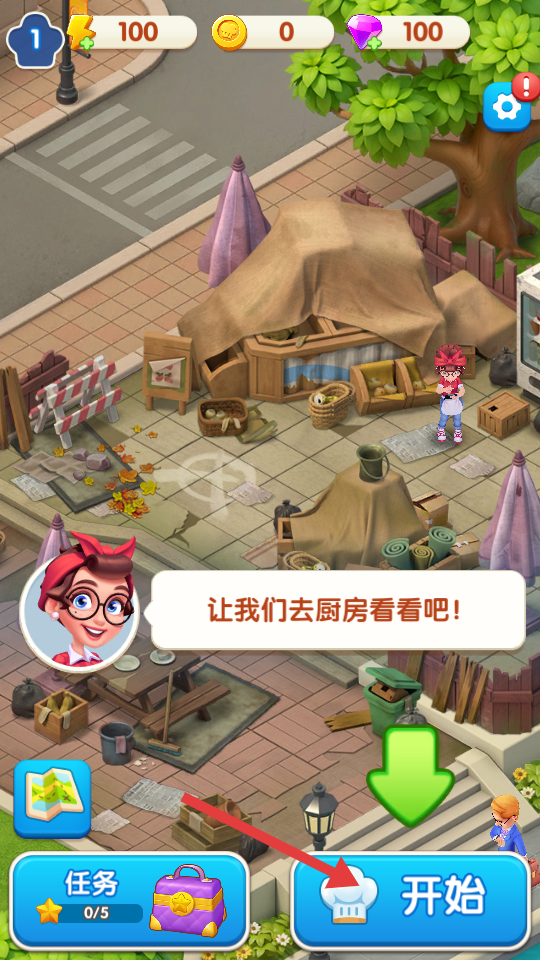 1、点击【开始】,前往厨房,开启后续的游戏操作。