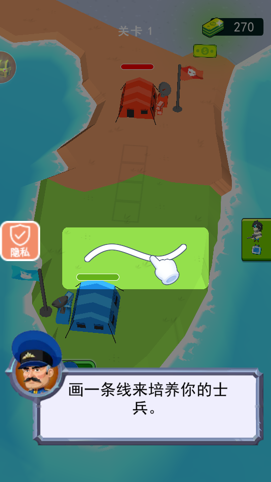 2、接着按照“画一条线来培养你的士兵”提示,在指定区域画线,完成士兵召唤。