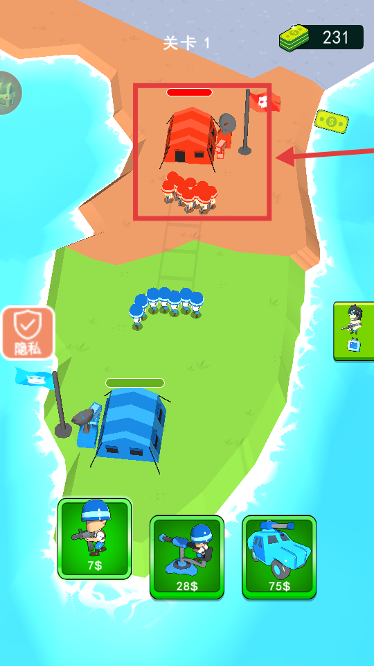1、进入游戏后,根据引导选择合适部队,开启关卡挑战。