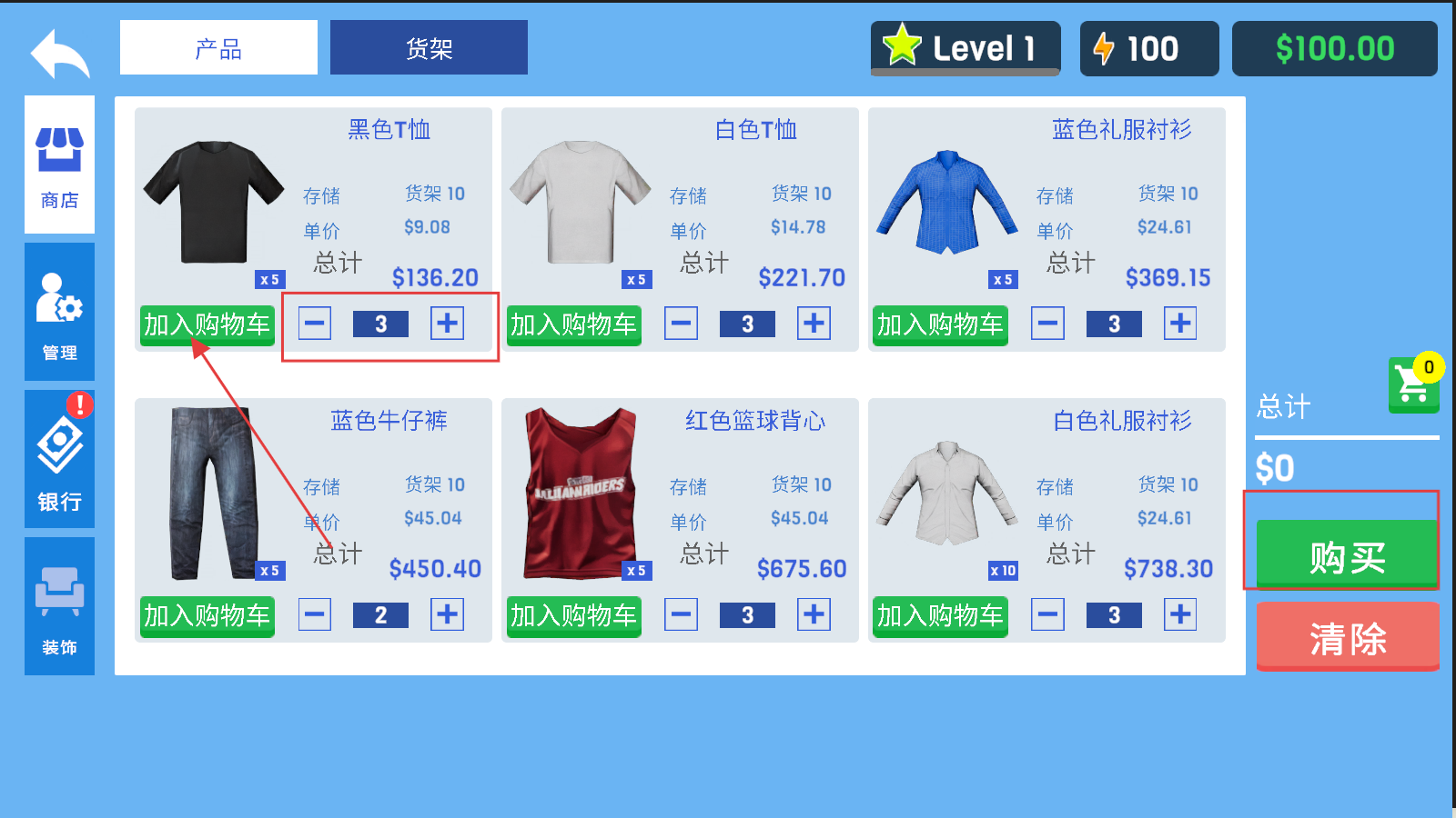 服装店模拟器中文版是一款免费的模拟经营游戏。作品以模拟经营为核心,需管理服装的样式、价格与陈列,还要负责收银和产品推销以吸引顾客;要预订连衣裙、衬衫、夹克、裤子及配饰等时尚商品,以实惠价格网购后精心摆上货架,扩大店铺规模、提供优质服务来增加客源;需开展促销活动、定有竞争力的价格促进快速销售,管理现金与卡交易时时刻警惕盗窃并采取安全措施。
