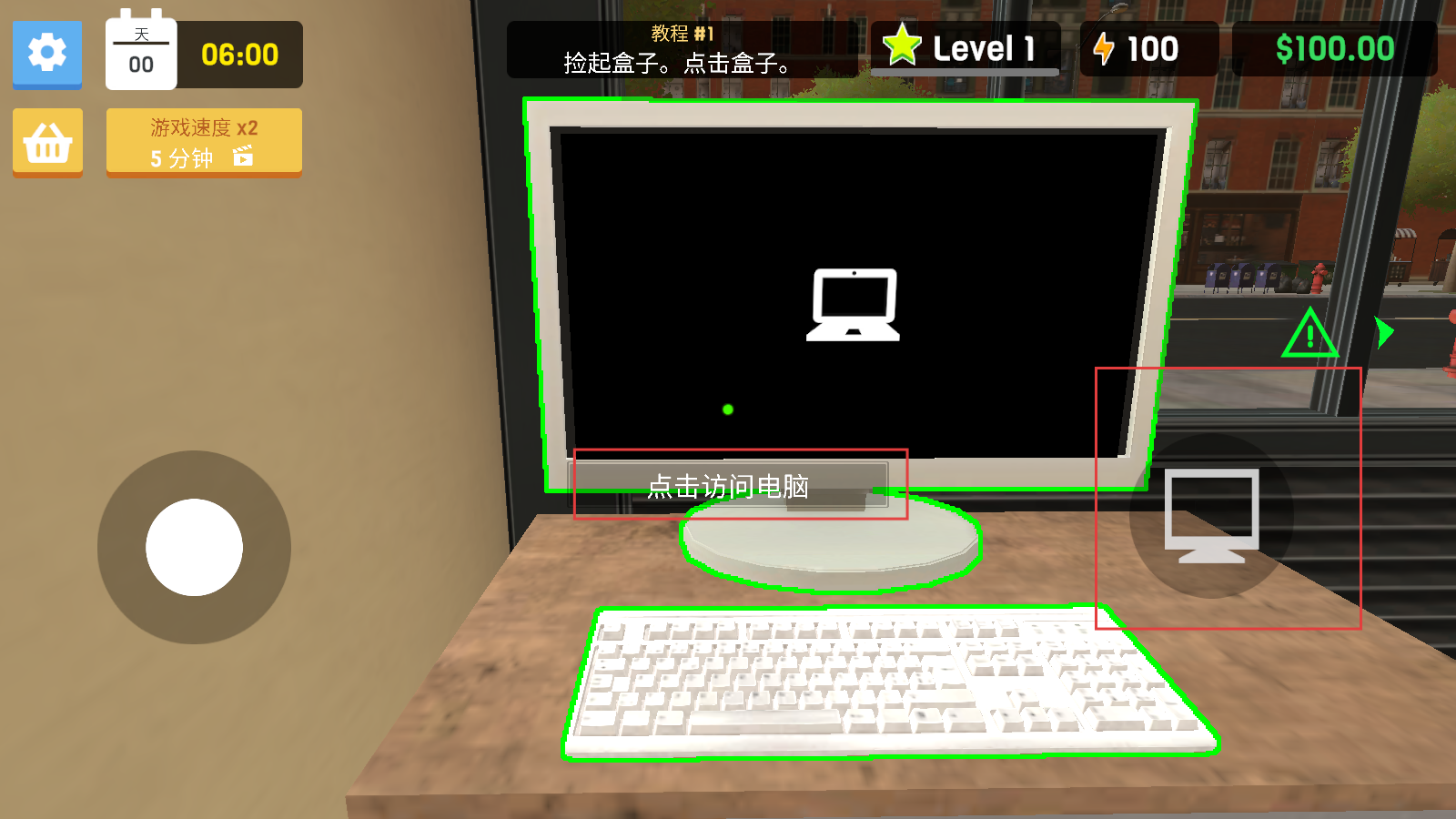 2、点击电脑区域的【点击访问电脑】或电脑图标,进入采购管理界面,完成教程任务。