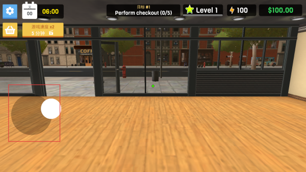 1、使用左下角虚拟摇杆控制角色移动,可探索商店或前往目标地点完成任务。
