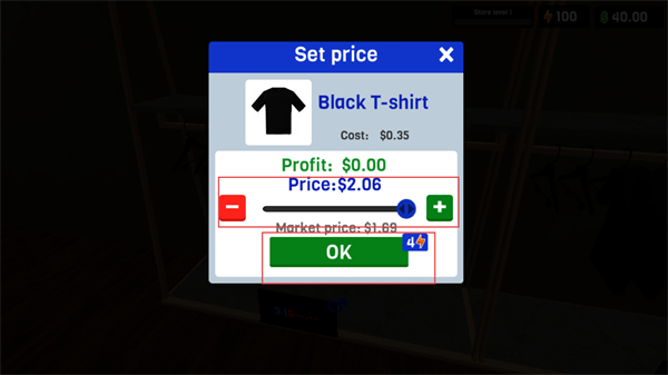 4、为黑色T恤设置价格,调整至合适数值后点【OK】,完成定价开始售卖。