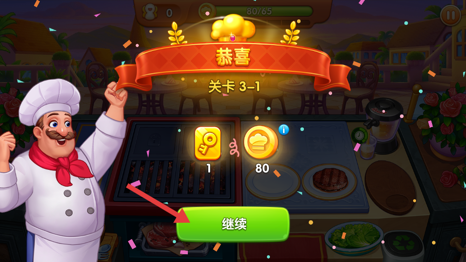 4、关卡完成后,点击【继续】,进入下一关继续游戏。