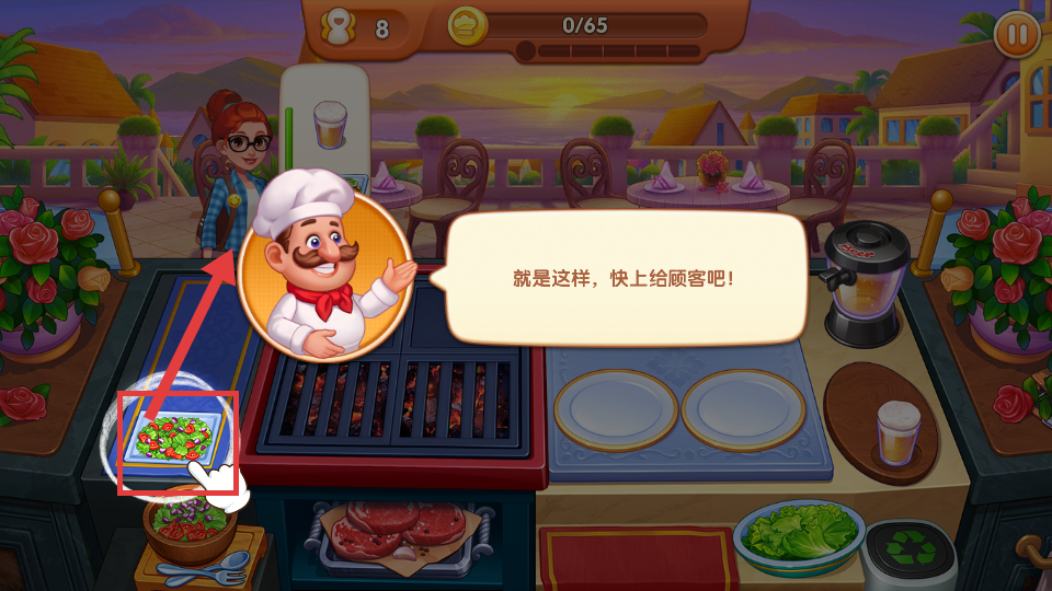 2、将制作好的沙拉端给对应的顾客,获取小费。