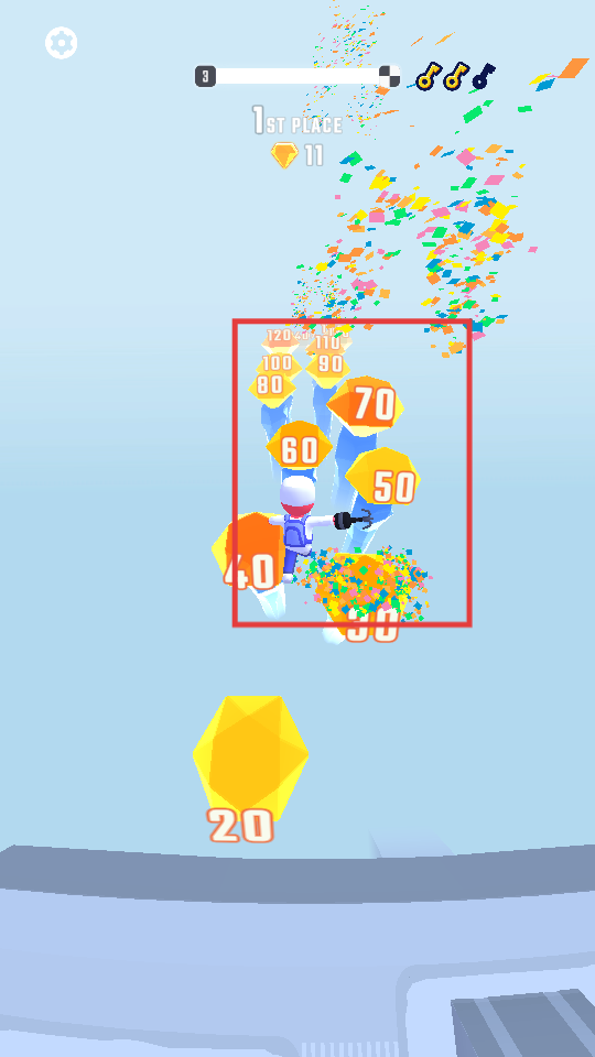 4、持续收集钻石和得分道具,尽量落在得分高的跳台上,获取更多得分,完成关卡挑战。