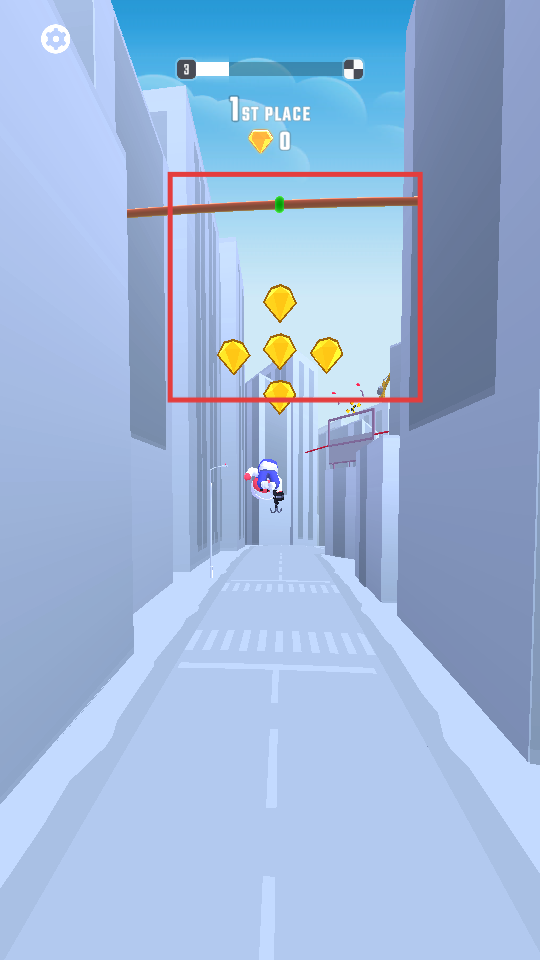 3、在游戏中操控角色在绳索间摇摆前进,收集空中的钻石,争取保持领先名次。