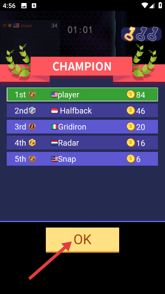 4、成为冠军后,点击【OK】按钮,领取奖励并继续后续游戏。