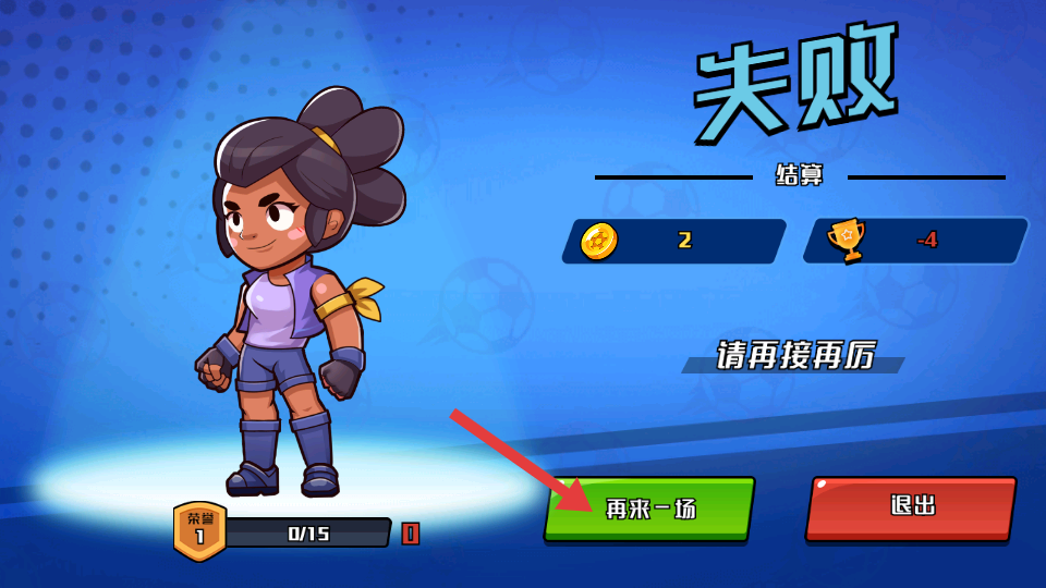 4、对局失败后,点击【再来一场】按钮,重新挑战对局。