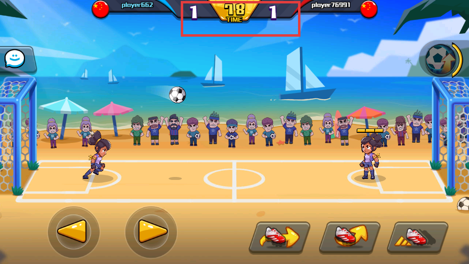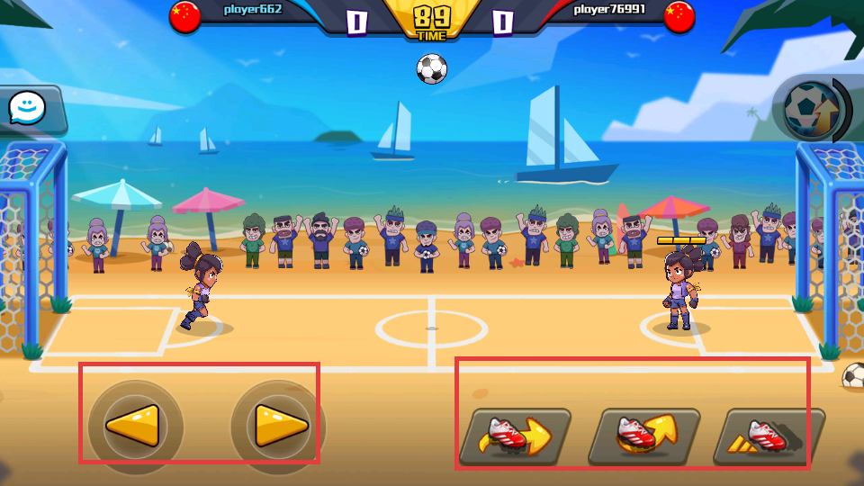 2、通过左右箭头按钮操控角色移动,合理使用右侧射门动作,助力足球对战。