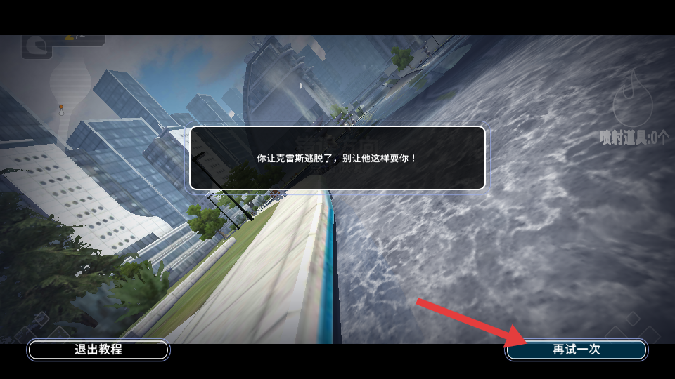 4、任务失败后,点击【再试一次】按钮,重新挑战教程关卡。