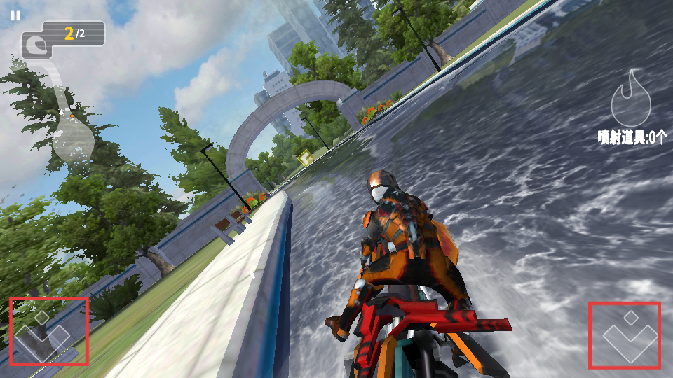 3、使用左右操作按钮,控制赛艇的行驶方向,沿着正确赛道前进。