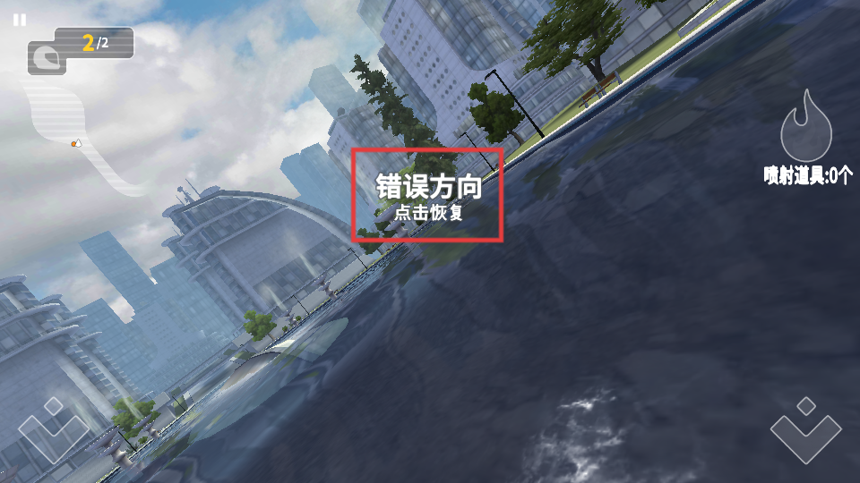 2、若出现【错误方向】提示,点击恢复,回到正确的赛道行驶。