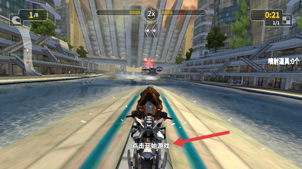 1、点击开始游戏,进入竞速对局,留意赛道与喷射道具数量。
