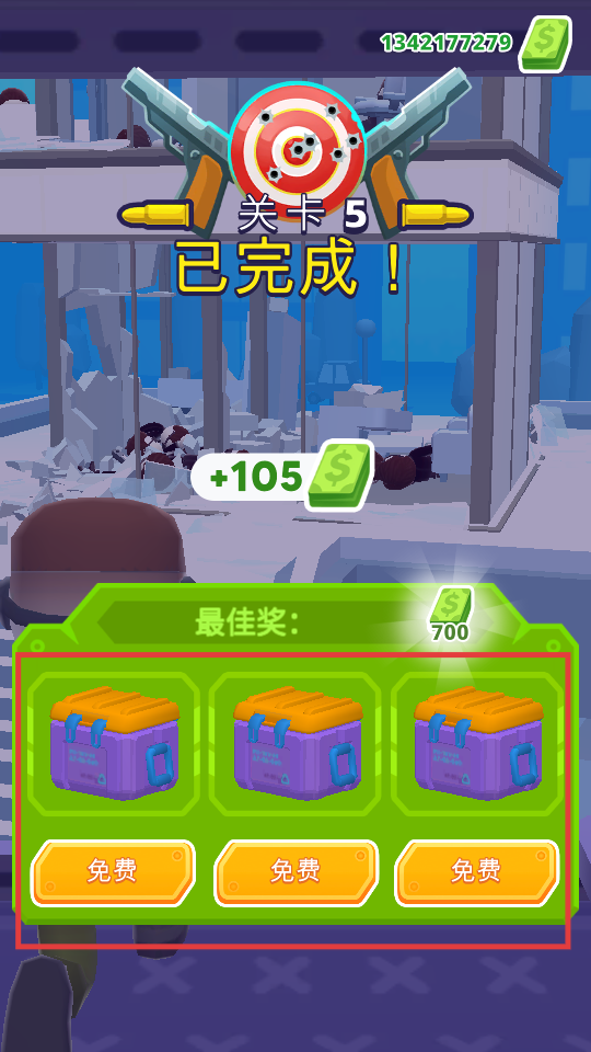 4、关卡完成后,点击免费宝箱,领取奖励,获取游戏资源。