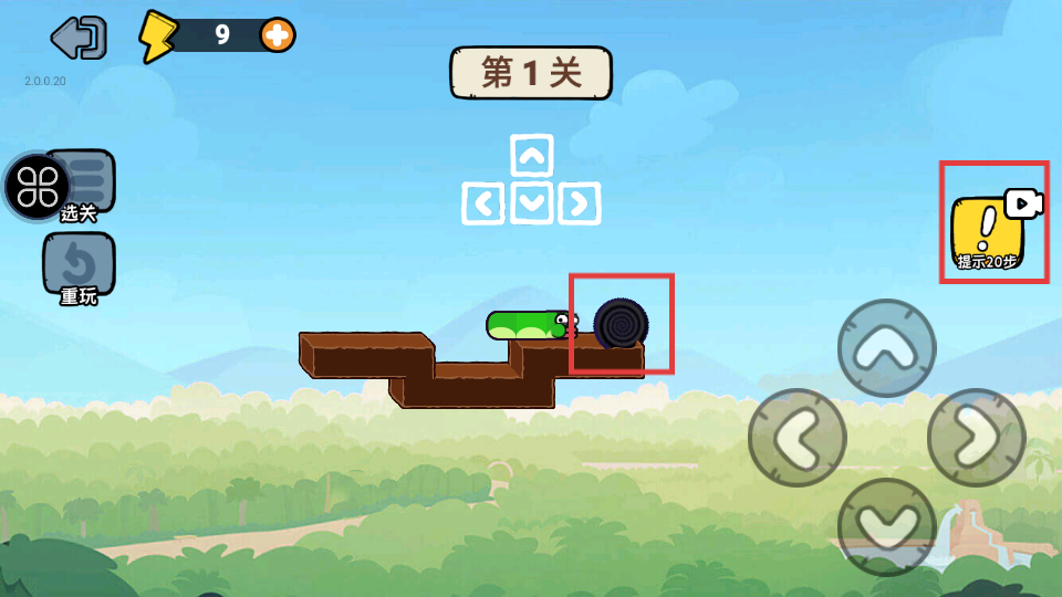 2、在关卡中,使用方向按钮操控蛇移动,向目标位置前进。