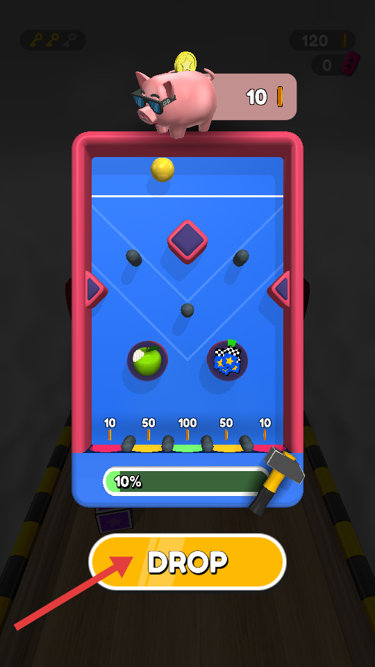 4、关卡后续阶段,点击【DROP】按钮,参与弹球类的互动环节,获取对应奖励。