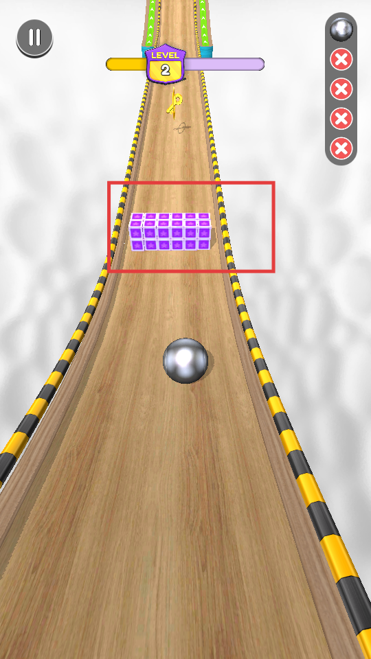2、操控金属球前进,注意躲避赛道上的紫色方块,继续向关卡目标推进。