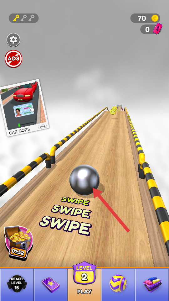 1、在关卡中,根据【SWIPE-SWIPE-SWIPE】提示,滑动金属球,让其在赛道上移动。