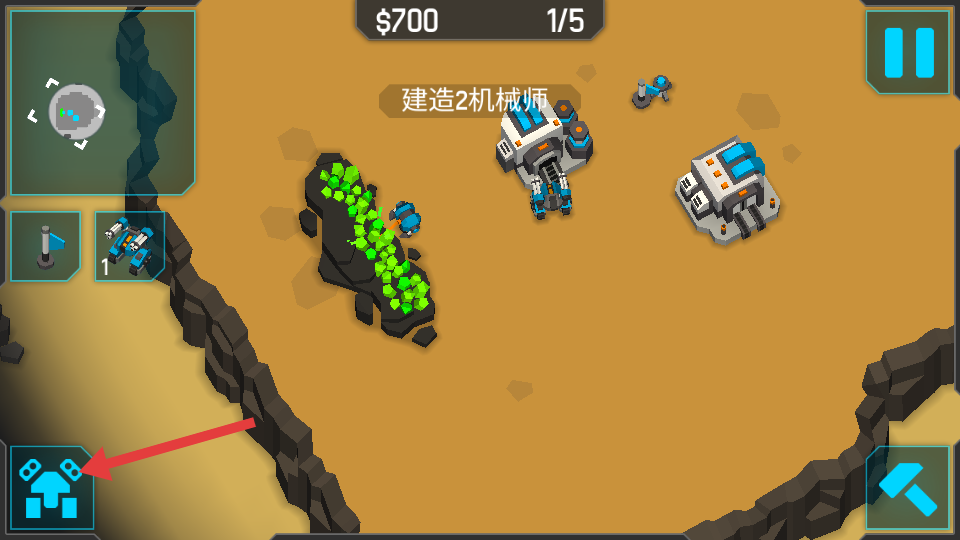 2、点击左下角的建造图标,根据提示建造机械师,推进流程。