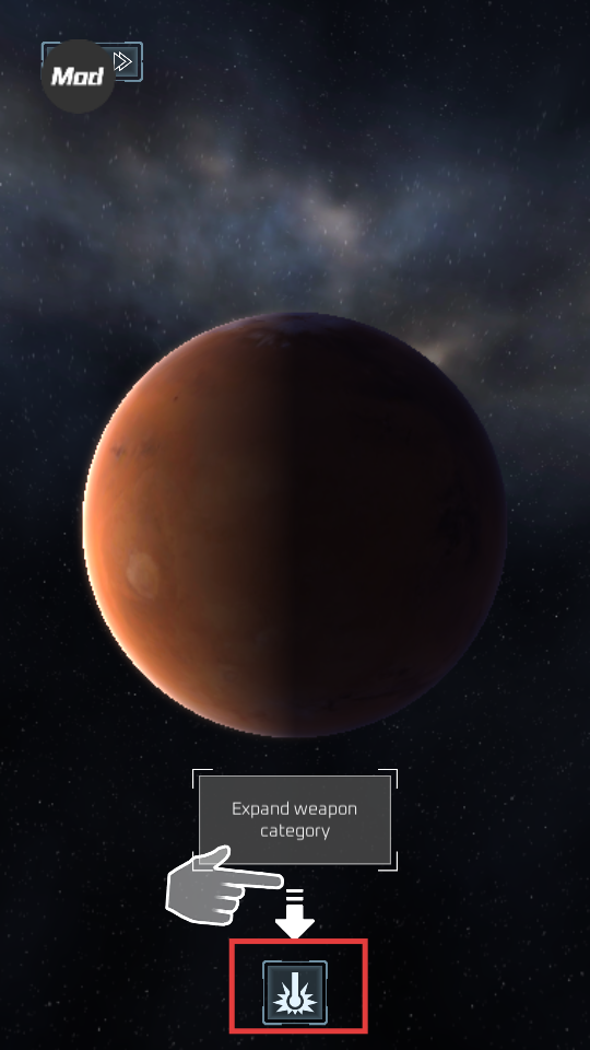 3、在展开的武器栏中,可选择【KINETIC-ARTILLERY】【PLASMA】等不同类型的武器,为攻击行星做准备。