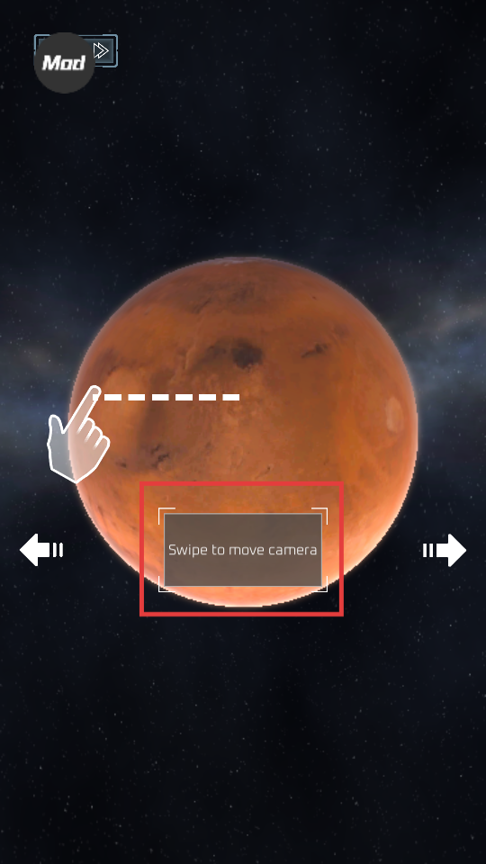 1、根据【Swipe-to-move-camera】提示,滑动屏幕移动视角,查看行星的不同区域。