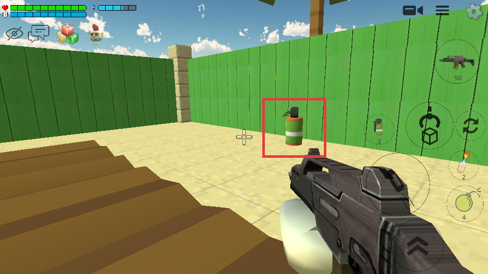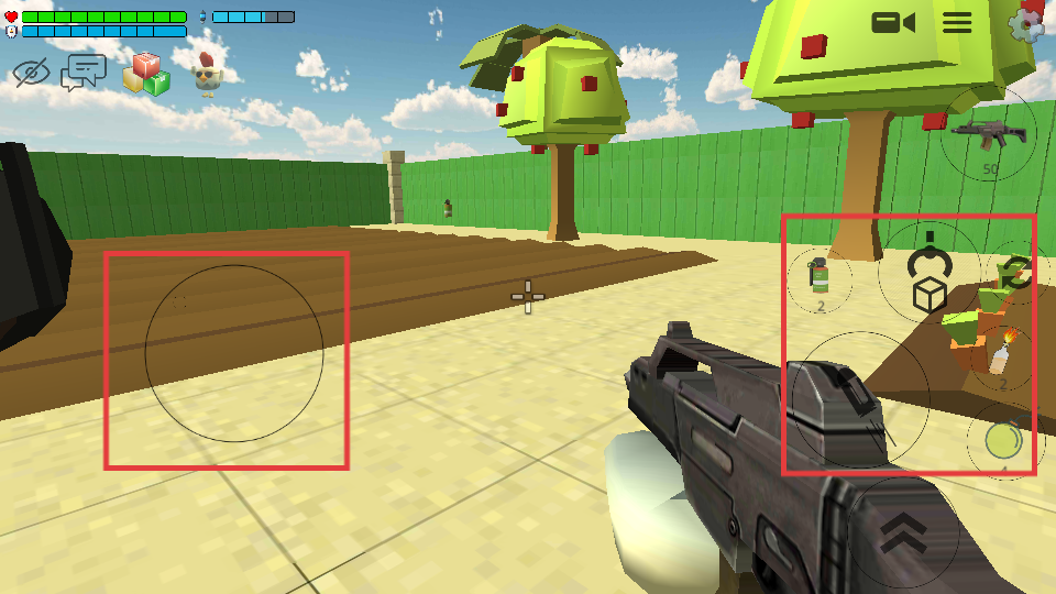 3、游戏过程中,利用左侧区域控制角色移动,同时使用右侧的道具和射击按钮,与场景互动。