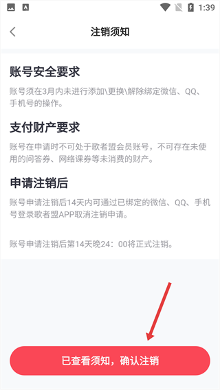 4、点击【已查看须知,确认注销】按钮,提交注销申请。