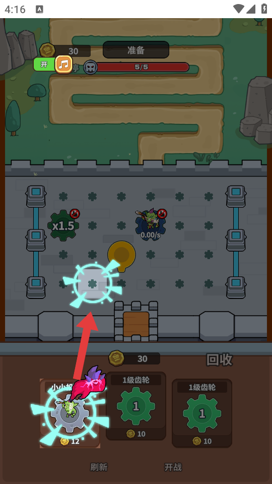 2、接着,选择下方的【1级齿轮】,同样放置到上方合适的防御位置,增强防御能力。