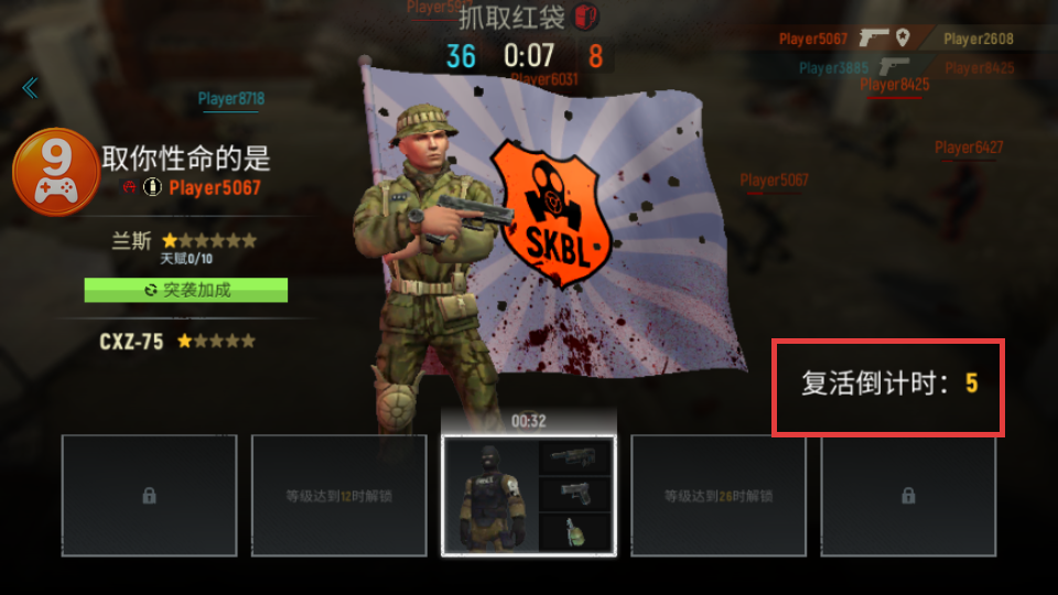 4、若被击败,等待【复活倒计时】结束,准备再次参与抓取红袋的战斗。