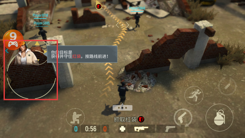 2、根据提示,使用左侧摇杆移动角色,按路线前进完成目标。