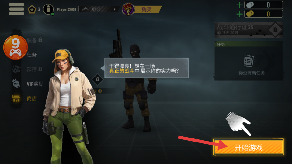 1、点击【开始游戏】按钮,进入战斗场景,准备展示实力。