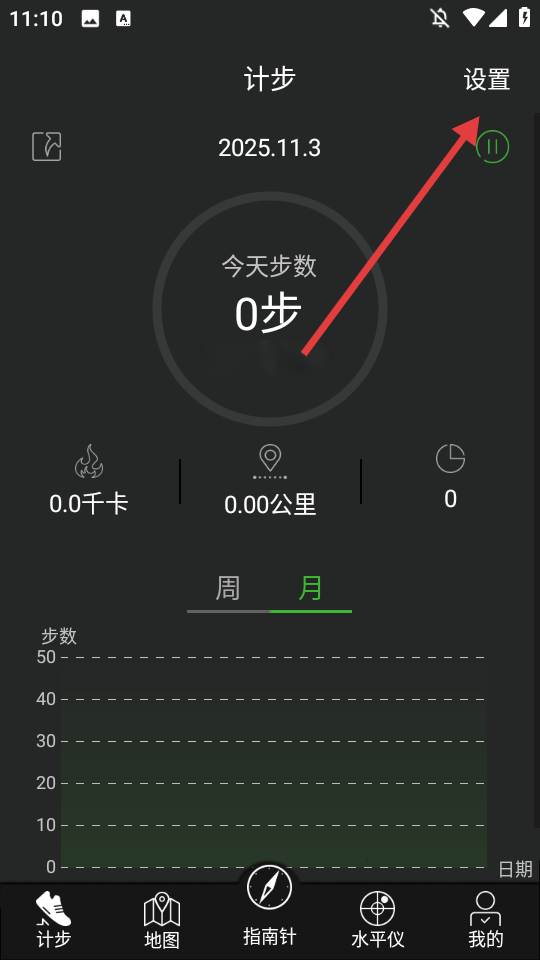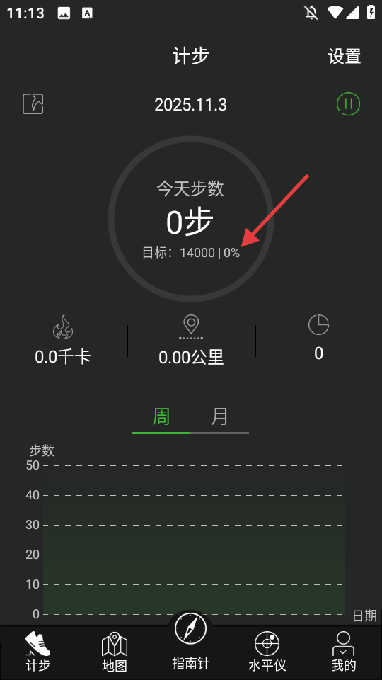 4、保存后返回计步页面,即可查看设置后的目标步数及完成进度。