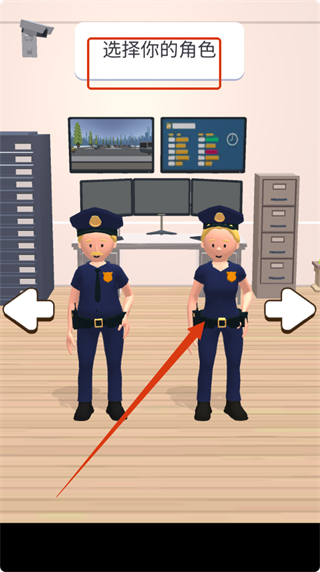 1、游戏开始时,在【选择你的角色】界面,选择警察角色,进入游戏场景,开启身份识别任务。