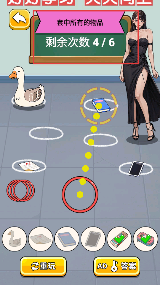 3、关注剩余次数,继续瞄准还未套中的物品,精准抛出圆圈,争取套中更多物品。