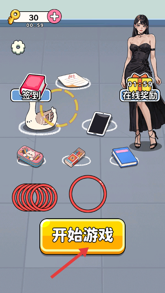 1、点击【开始游戏】按钮,进入套圈游戏环节。