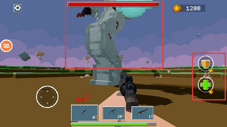 3、持续攻击怪物,关注其血量变化,必要时使用右侧的护盾和加血道具,保持自身状态。